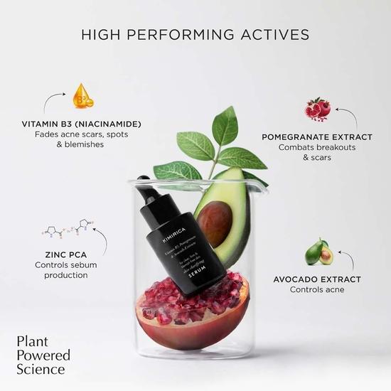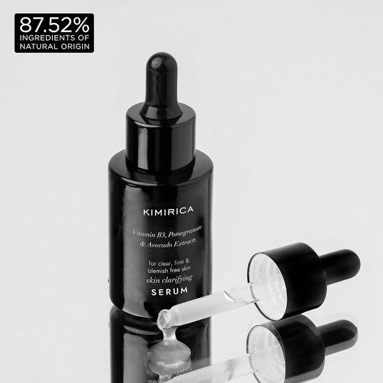 Очищающая сыворотка для лица Kimirica Skin Clarifying Face Serum с ниацинамидом и гранатом для чистой, упругой кожи | Контроль жирности кожи для мужчин и женщин | 100% веганский продукт, силикон | 30 мл