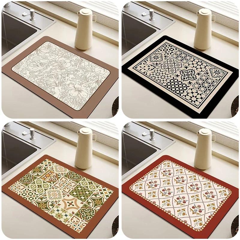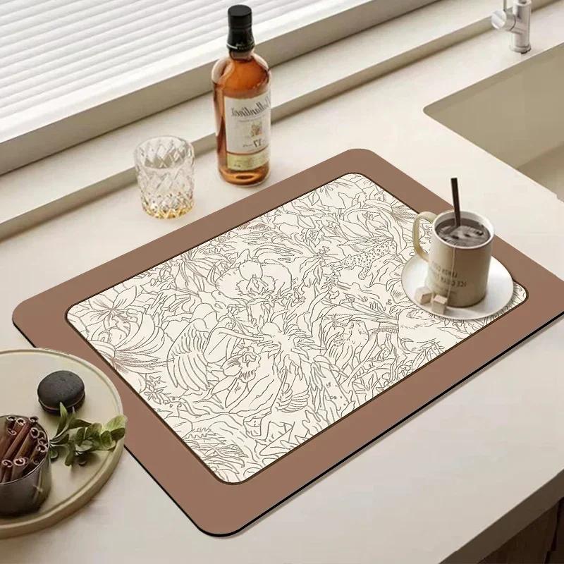 Коврик для слива воды, впитывающий коврик для сушки посуды, нескользящий коврик для посуды, ретро-подставка под кофейные приборы, кухонные принадлежности