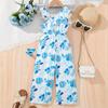 Модный комбинезон с цветочным принтом для девочек, летний повседневный комбинезон для детей