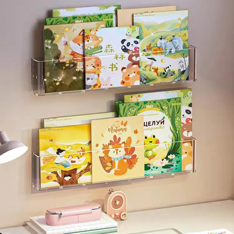Прозрачный акриловый стенд для книг, настенная полка для хранения, декоративная полка для хранения журналов, детская настенная полка для газет и картинок