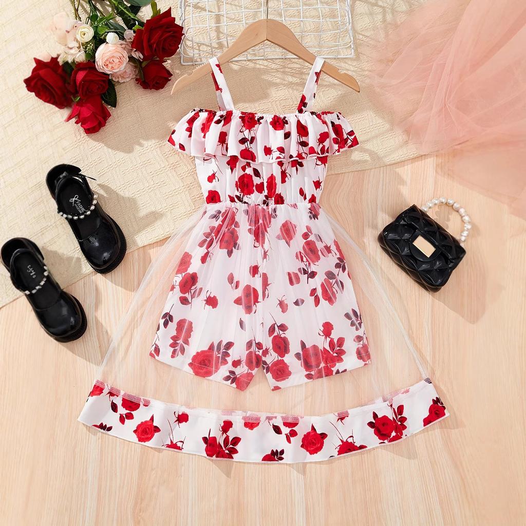 Детские повседневные комбинезоны для девочек, летние комбинезоны с милым цветочным узором