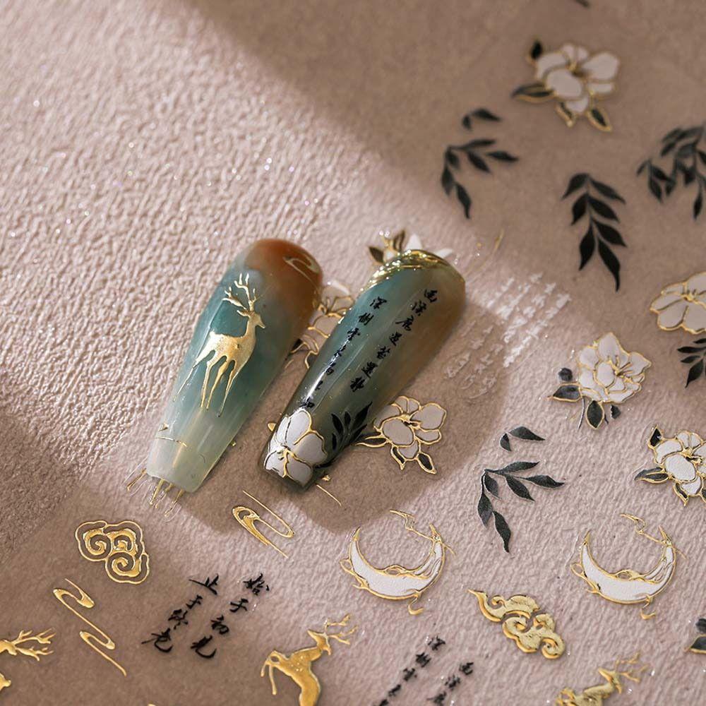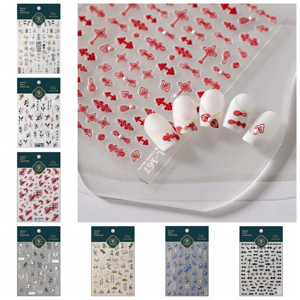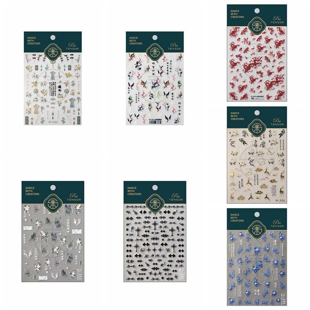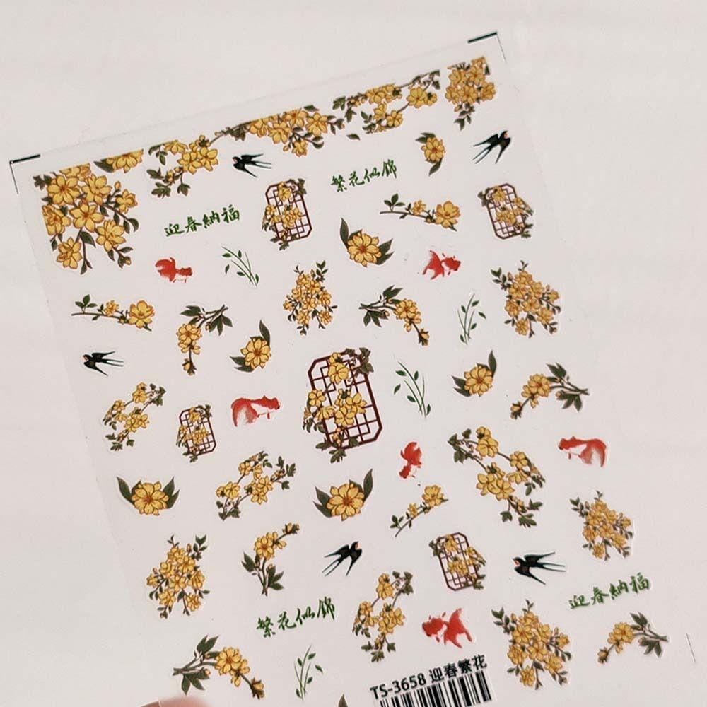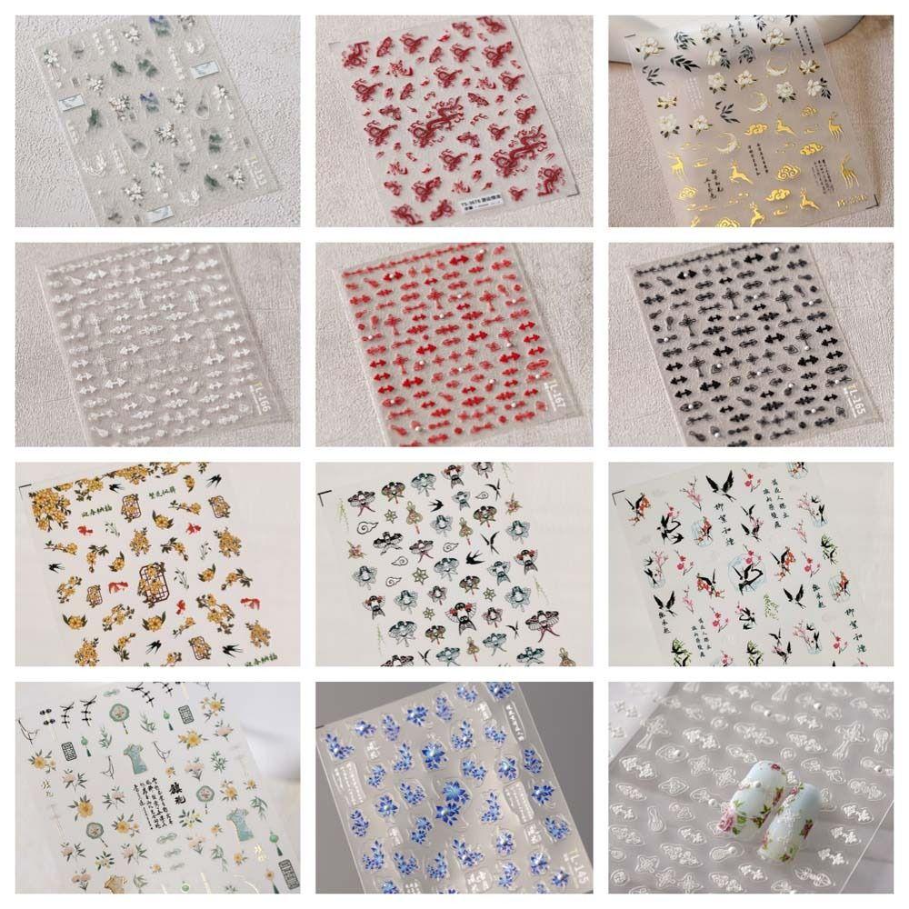 Ласточка Китайский цветок Наклейка для ногтей Китайский иероглиф Поэзия Цветок Украшение для ногтей Женские подарки