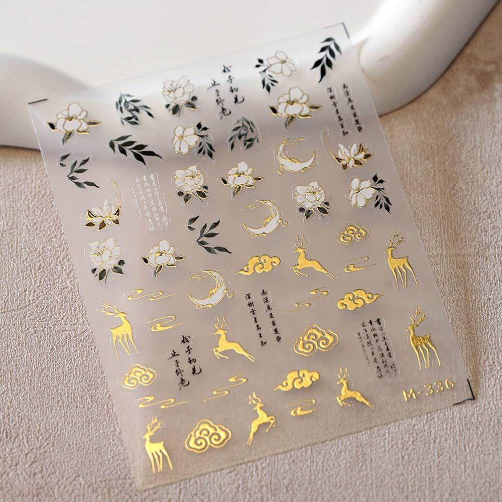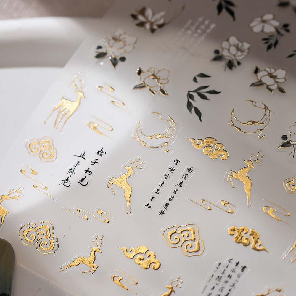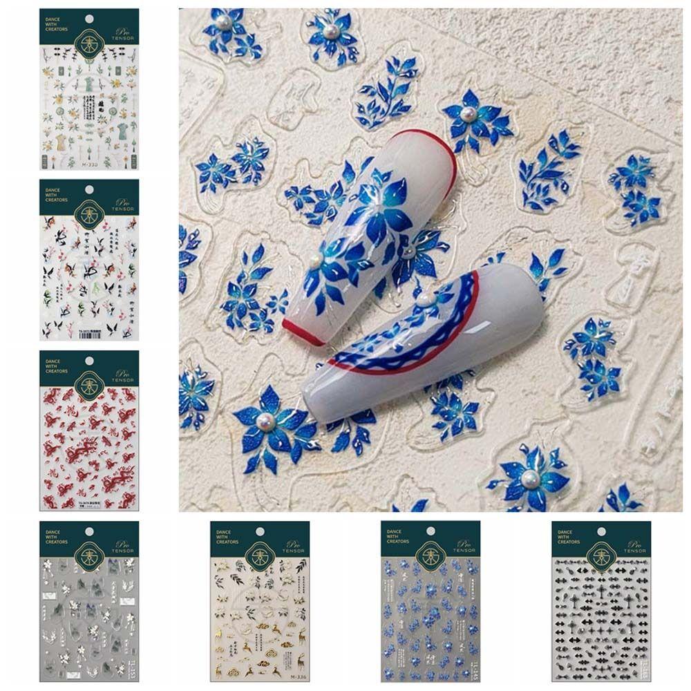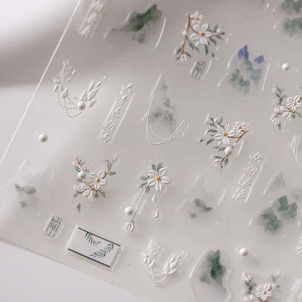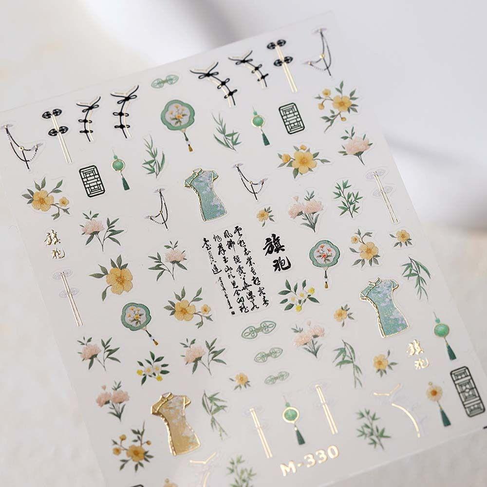 Ласточка Китайский цветок Наклейка для ногтей Китайский иероглиф Поэзия Цветок Украшение для ногтей Женские подарки
