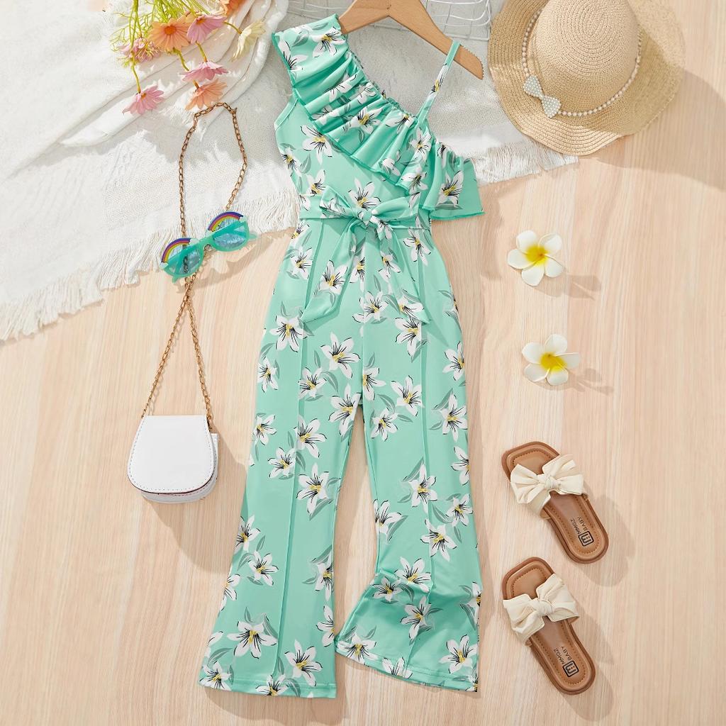 Повседневный комбинезон с цветочным принтом для девочек, летний повседневный комбинезон для детей