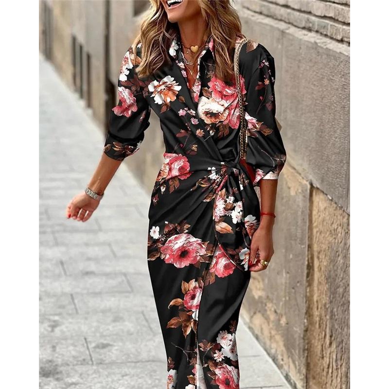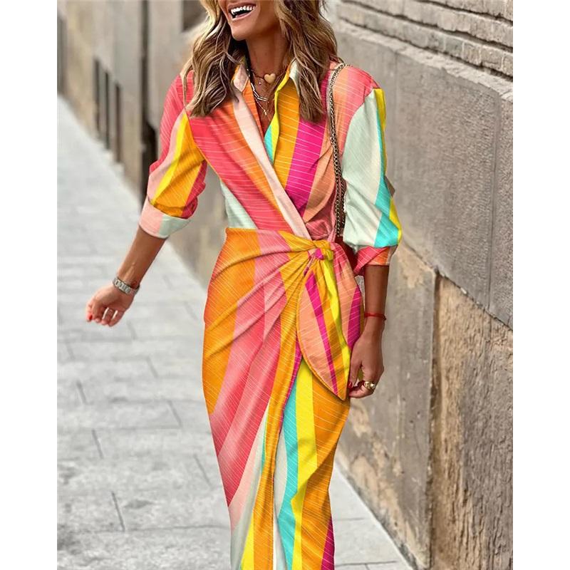Женское кружевное платье миди в полоску с длинными рукавами и лацканами