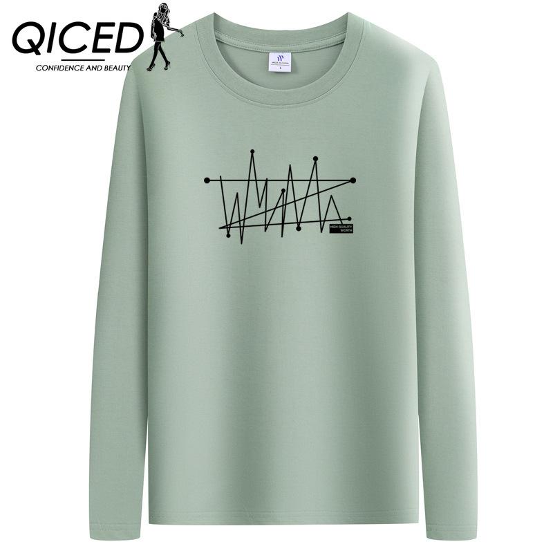 QICED Весенняя мужская футболка с длинными рукавами, трендовая одежда, принт, О-образный вырез, белая повседневная рубашка с длинными рукавами, осенняя одежда, свободная рубашка