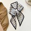 Черный печатный шелковый шарф, повязка для волос, лента, завязанные волосы, длинный бант, винтажная атласная лента, шейный платок, аксессуары для волос