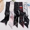 Черный печатный шелковый шарф, повязка для волос, лента, завязанные волосы, длинный бант, винтажная атласная лента, шейный платок, аксессуары для волос — купить товар онлайн с бесплатной доставкой по всему миру!