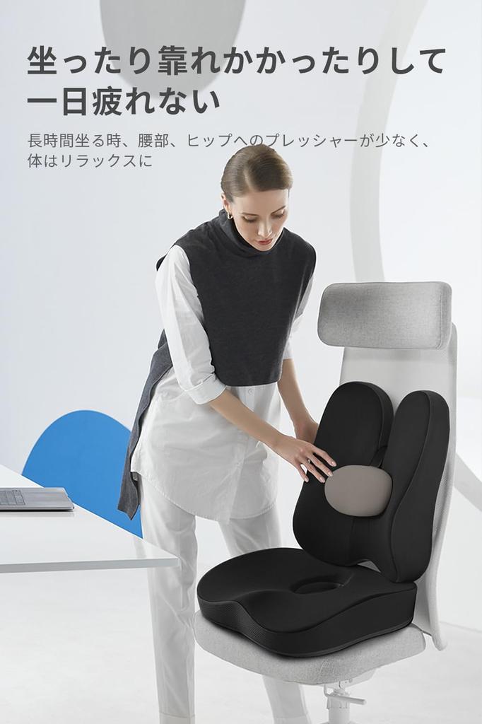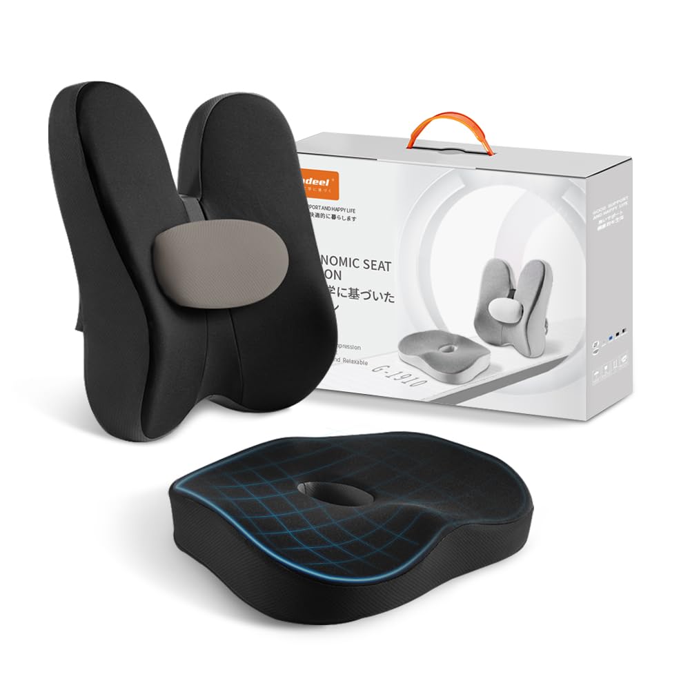 [Новая усовершенствованная поясничная подушка и забутон, интегрированные, устраняют усталость от сидения] Эта подушка представляет собой комплект из 2 частей: поясничная подушка и забутон, которые обеспечивают комплексную поддержку вашего тела от талии до ягодиц.. Длительное сидение может привести к повреждению поясничных позвонков, эта поясничная подушка и подушка для сиденья могут помочь вам поддерживать правильную осанку, надежно поддерживать поясницу, подгонять ее и сохранять естественный изгиб, уменьшать давление на поясницу и ягодицы и делать ваше тело более расслабленным.. 【Эргономичный дизайн】Подушка сиденья спроектирована в соответствии с естественными физиологическими изгибами, вогнутым обхватом и изогнутой полной посадкой, что позволяет центру тяжести тела естественным образом смещаться назад во время сидения, уменьшая давление на хвостовые позвонки.. О-образная выемка, обеспечивает хорошую циркуляцию и воздухопроницаемость, облегчая сидение. С помощью подушки от боли в пояснице вы можете расслабить спину, с помощью выступающей независимой небольшой круглой подушечки вы можете свободно регулировать высоту вверх и вниз, выбирать наилучшее положение, противостоять боли в теле и полностью расслабить спину.. Универсальная конструкция равномерно распределяет и поглощает давление от бедер до спины.. Поддержание комфортного настроения при длительном правильном сидении