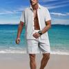 Дышащий трикотажный мужской комплект в пляжном стиле, летняя повседневная трикотажная рубашка с коротким рукавом и шорты в цветном стиле, спортивные костюмы из двух частей для мужчин