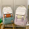 Школьный рюкзак для учеников младших классов средней школы, женский рюкзак большой вместимости с цветными блоками, мужской дорожный рюкзак с кошельком для монет