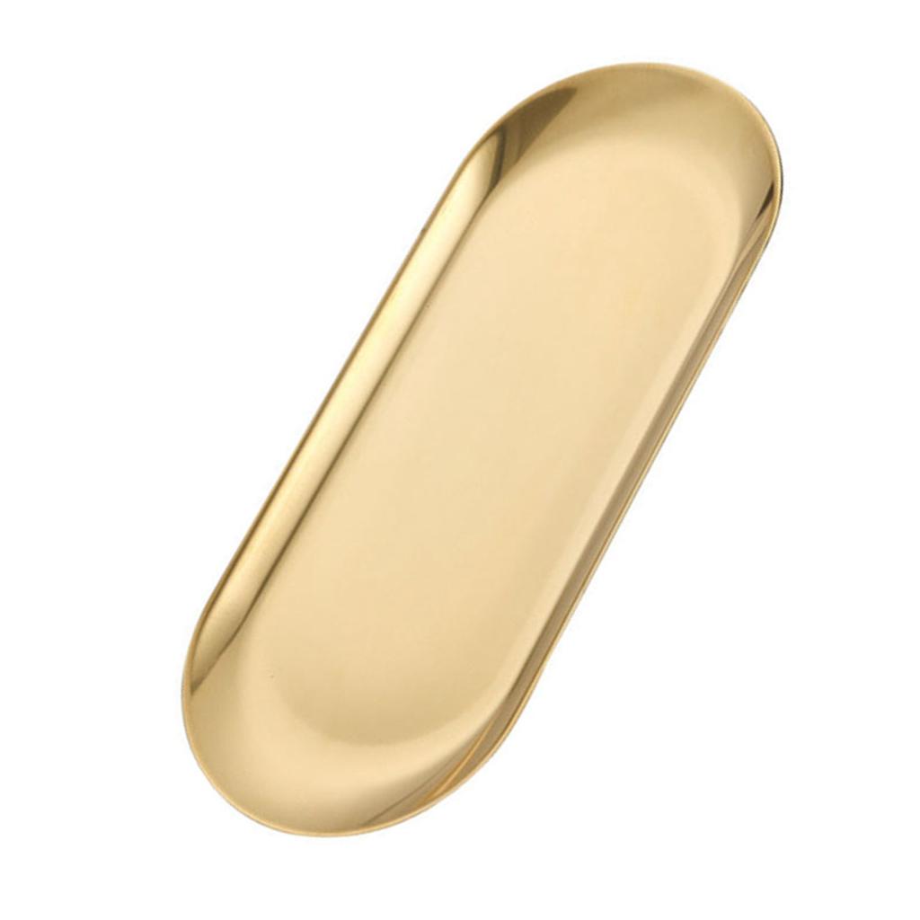 Овальный поднос из нержавеющей стали с плоским дном, препятствующий скольжению, утолщенный декоративный золотой поднос для хранения