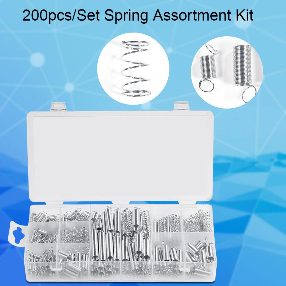 200 шт./набор 20 размеров, набор металлических пружин для сжатия и растяжения с коробкой