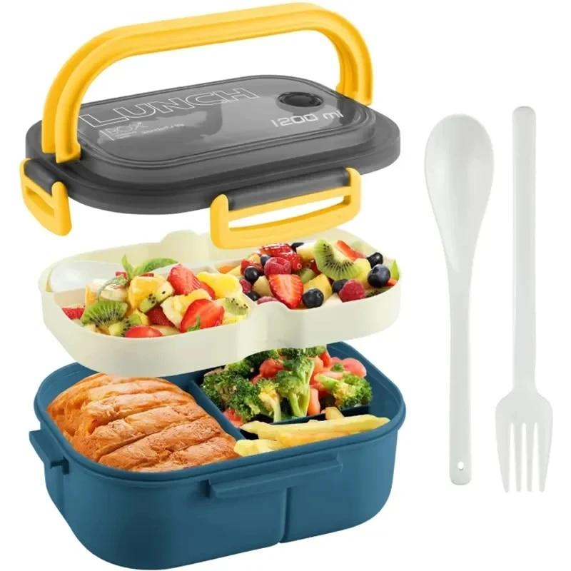 1 шт. Портативный герметичный ланч-бокс с 2 слоями сетки для детей, герметичный контейнер для закусок Bento со столовыми приборами, безопасный для микроволновой печи, контейнер для хранения продуктов