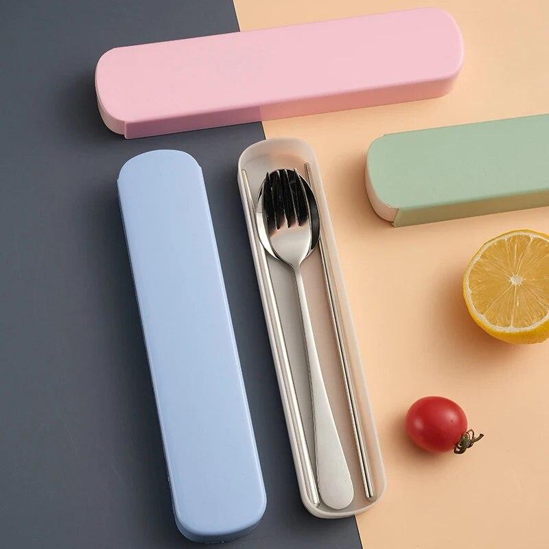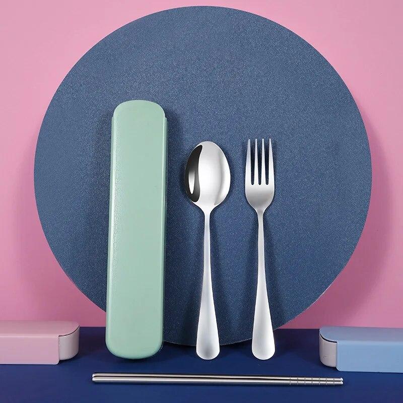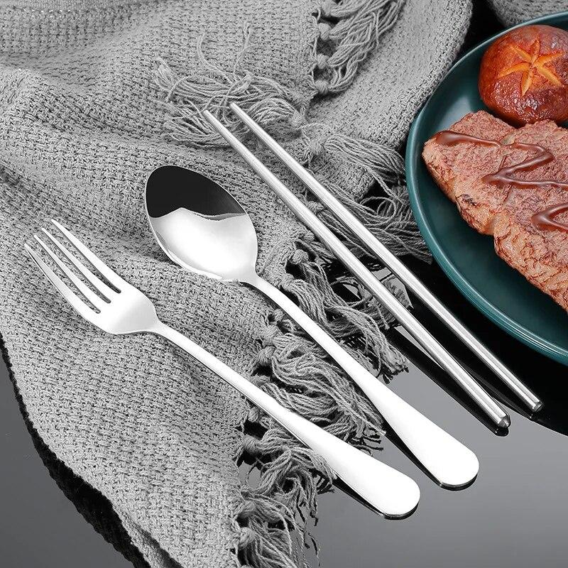 1 комплект бытовой портативной столовой посуды из нержавеющей стали, палочки для еды, ложки, вилки, набор из двух/трех предметов с коробкой