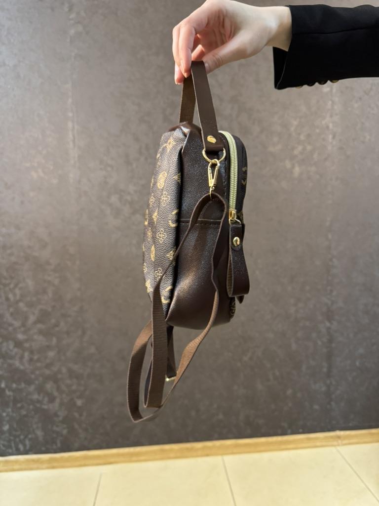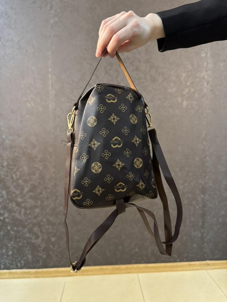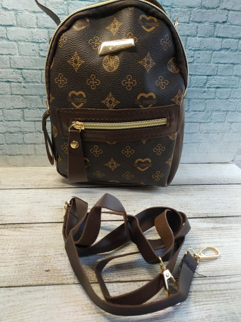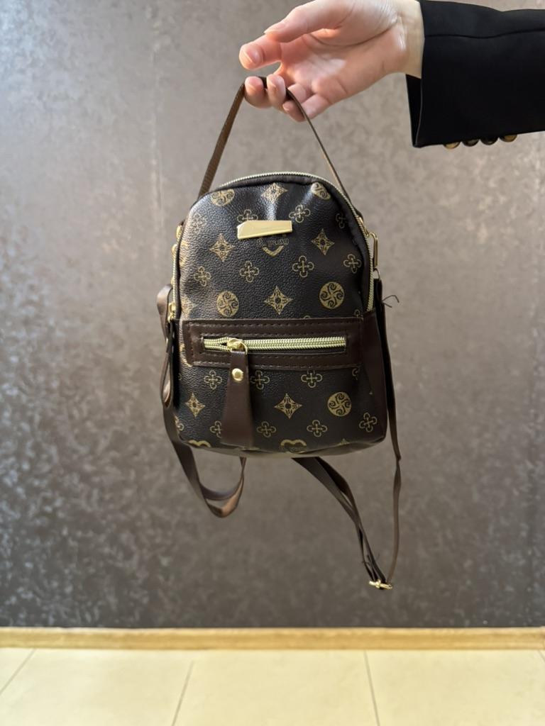 Маленький рюкзак 🖤Миниатюрный и стильный. 🖤Рюкзаком даже сложно назвать, скорее сумочка с лямками. 🖤Принт отдалённо напоминает Луи Вюиттон) 🖤Цвет я выбрала чёрный. 🖤Поместятся телефон, ключи и помада) Возможно, портмоне. Вариант на выход. 🖤Выполнен из искусственной кожи. 🖤Фурнитура золотистого цвета. 🖤Закрывается на молнию. Рекомендую миниатюрным девушкам и подросткам. Мне, наверное, уже несолидно) Отдам доче❤️