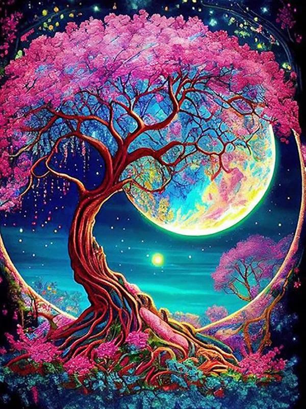 5D DIY Алмазная картина Цветное лунное дерево Полная круглая алмазная мозаика Вышивка крестиком Набор для украшения дома Искусство Подарки