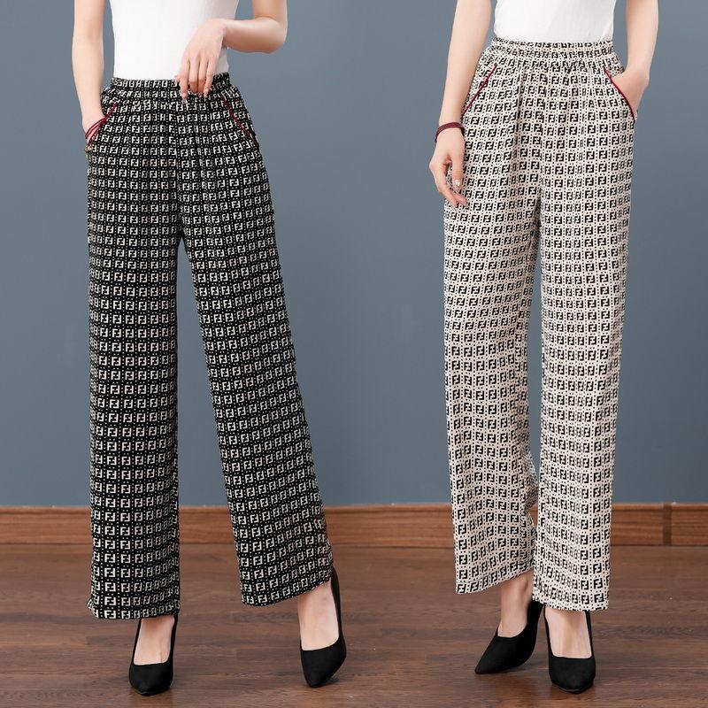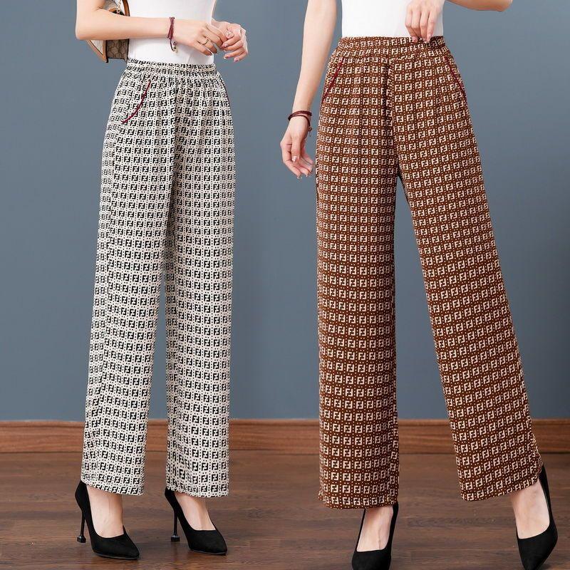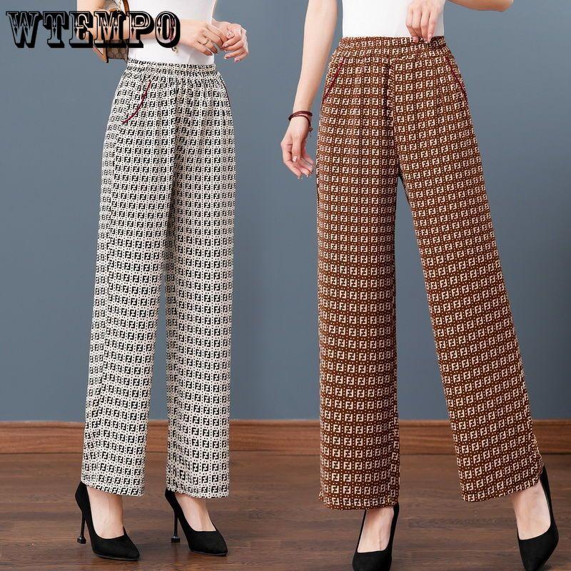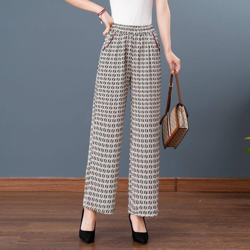 Летние женские повседневные брюки больших размеров с высокой талией, универсальные прямые брюки, повседневный тонкий дизайн