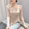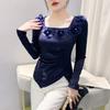 Женский топ с квадратным вырезом в новом зимнем стиле, футболка с длинными рукавами и нерегулярным разрезом, универсальная базовая футболка