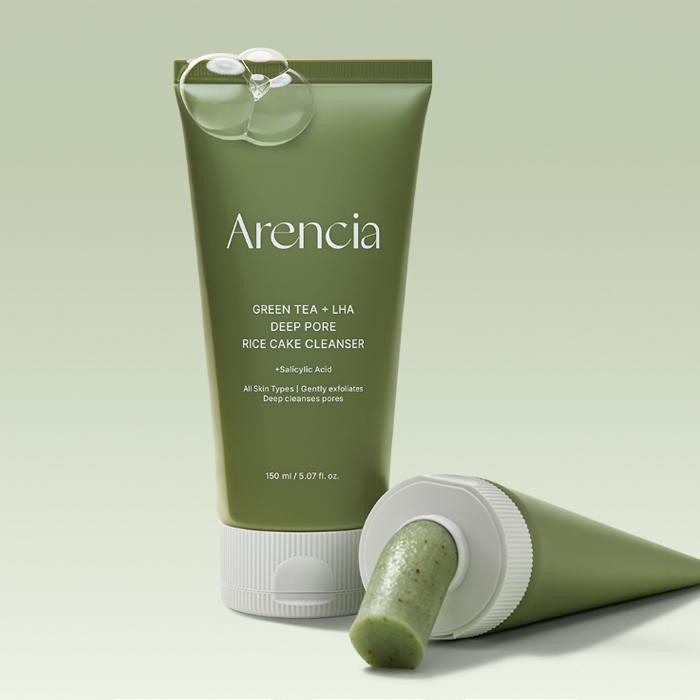 Arencia - Green Tea + LHA Deep Pore Rice Cake Cleanser - это глубоко очищающее средство для лица, в состав которого входят экстракт зеленого чая, LHA и рисовая пудра, очищающие поры, мягко отшелушивающие и балансирующие выработку кожного сала..