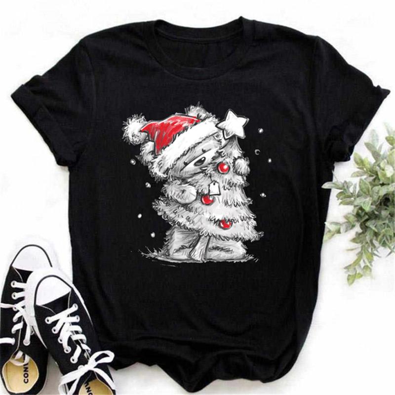 Рождественские топы с мультяшным принтом, женская красная футболка, летняя футболка, модная футболка в стиле Харадзюку, Femme