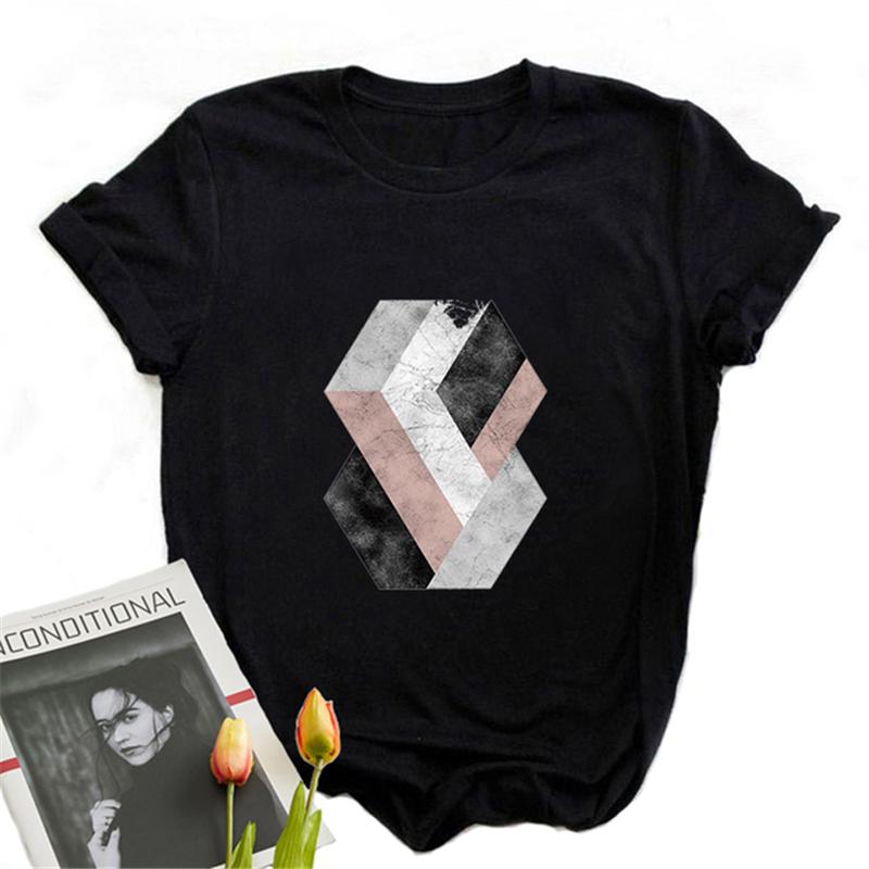 WVIOCE модная простая черная футболка с геометрическим графическим принтом - распродажа, женская одежда с короткими рукавами, свободная футболка, топы 31868