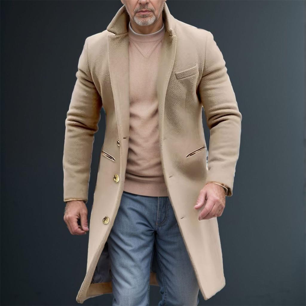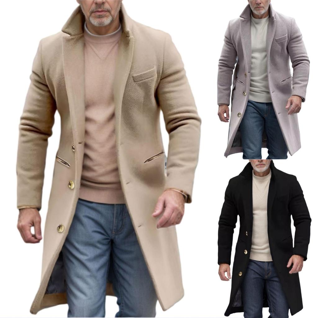 Мужское британское однотонное длинное пальто, модное теплое шерстяное пальто