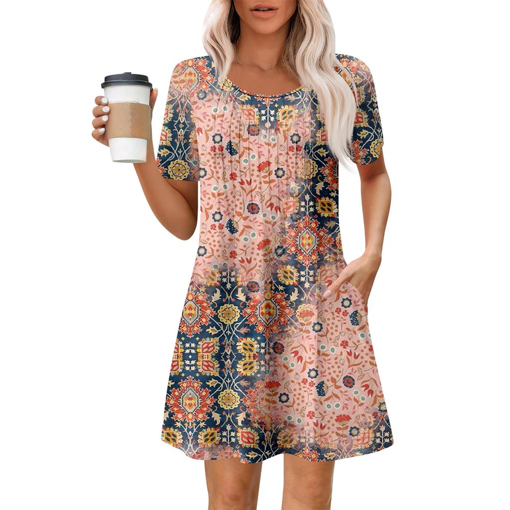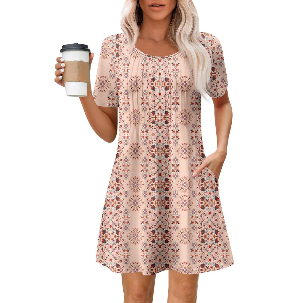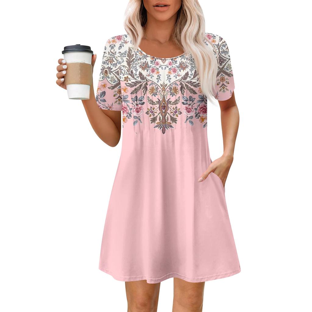 Женское летнее платье свободного покроя для пляжного отдыха, сарафан с коротким рукавом и круглым вырезом, с карманом, с коротким рукавом, платье-рубашка