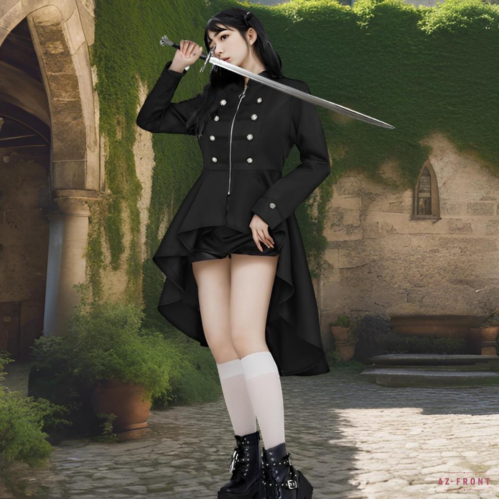 Военная форма Лолита Готическая Лолита Косплей Хэллоуин Фрак Асимметричный подол Вечеринка Культурный фестиваль Школьный фестиваль Сцена [AZ-FRONT] (Черный, XL)