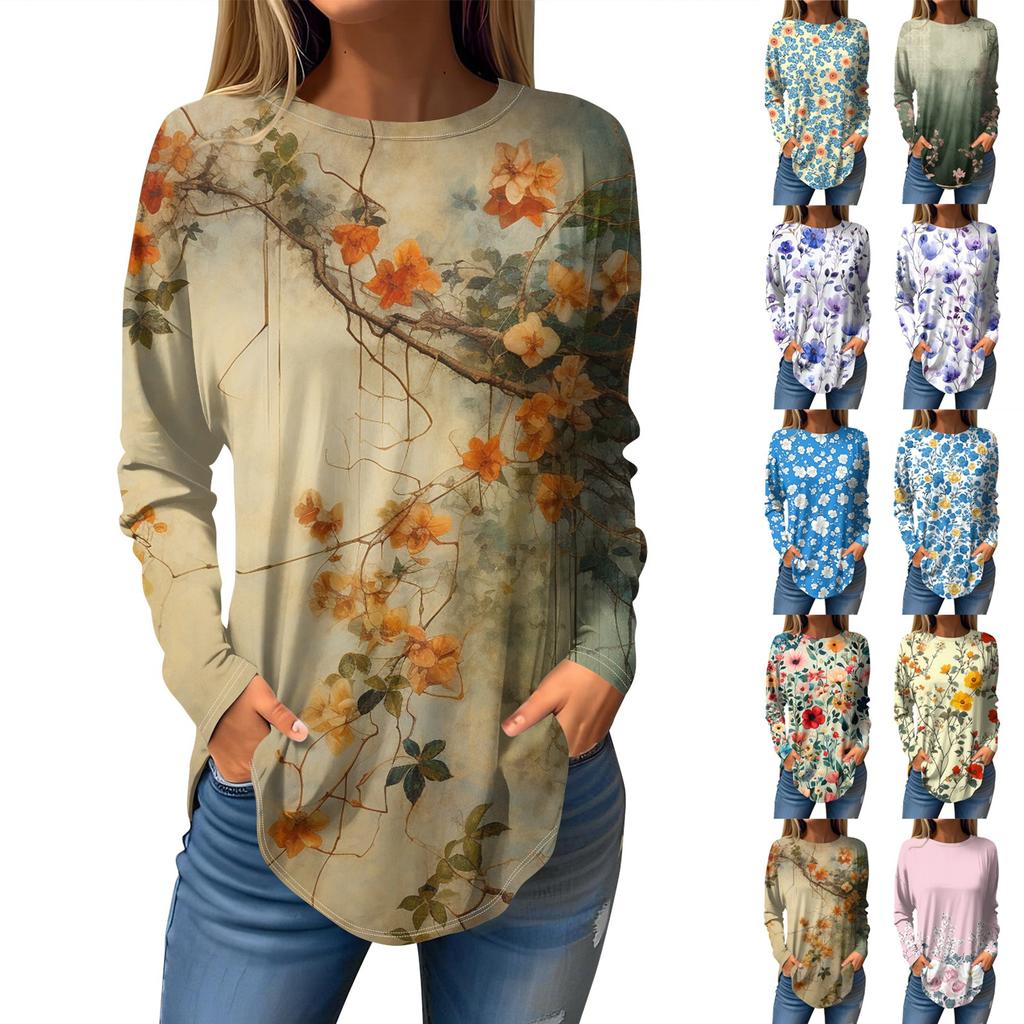Футболки для женщин, осенние повседневные рубашки с длинным рукавом, толстовка, винтажный топ с графическим принтом, пуловер