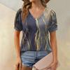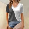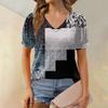 Женская модная футболка с коротким рукавом и V-образным вырезом, с принтом в стиле пэчворк, с цветными блоками, свободная повседневная футболка