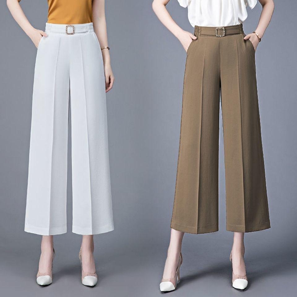 Офисные женские модные весенне-летние широкие брюки корейские женские эластичные повседневные свободные прямые брюки длиной до щиколотки с высокой талией — купить товар онлайн с бесплатной доставкой по всему миру!
