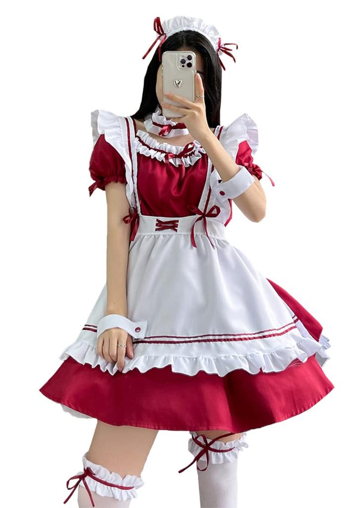 Костюм горничной для косплея Gothic One Large 2XL [FULINE], Костюм, Переодевание, Moe, Милый, Костюм, Лолита, Часть, Размер, Красный,