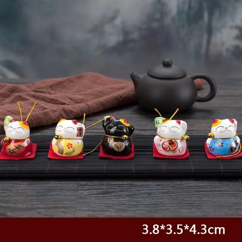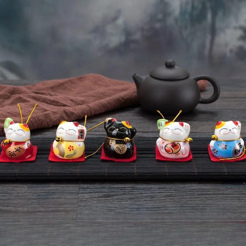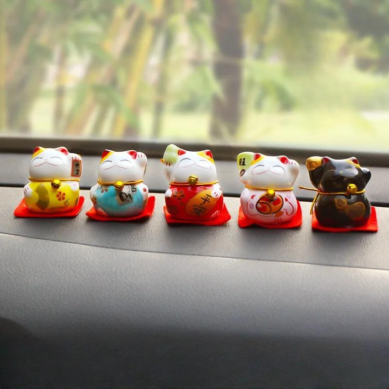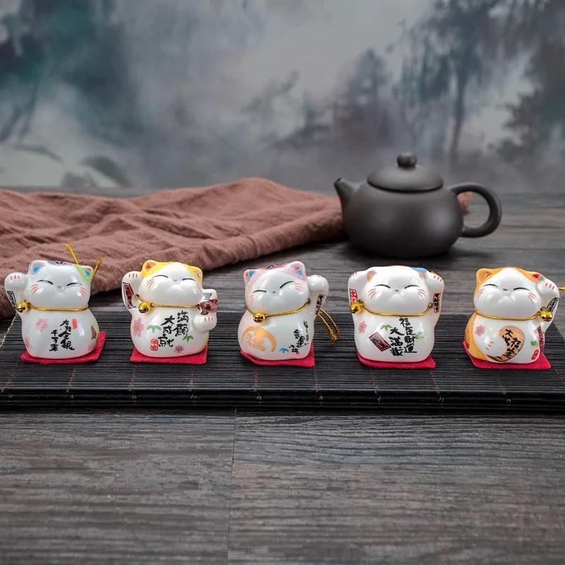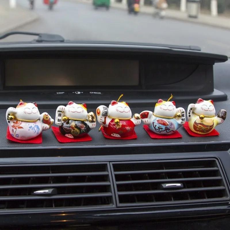 5 шт./набор керамических украшений для автомобиля Lucky Cat, маленькие милые мини-украшения для салона автомобиля в виде кошки, настольные фигурки, домашний декор, поделки