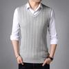 Осенний новый молодежный мужской свитер без рукавов с V-образным вырезом и цветочным узором, теплый вязаный топ