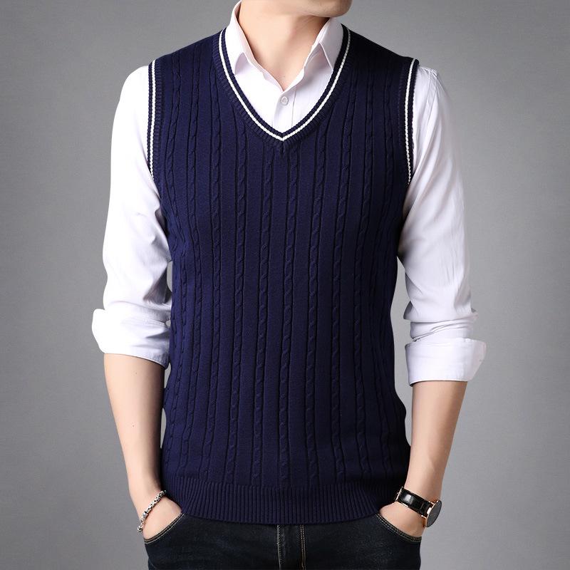 Осенний новый молодежный мужской свитер без рукавов с V-образным вырезом и цветочным узором, теплый вязаный топ — купить товар онлайн с бесплатной доставкой по всему миру!