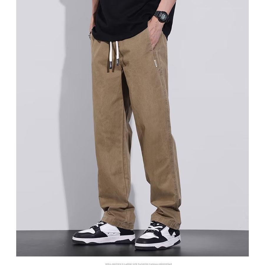 100% хлопок прямые повседневные брюки мужские рабочие широкие коричневые длинные брюки карго свободные спортивные брюки на шнурке мужские