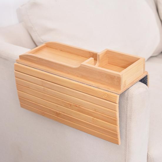 Держите все необходимое в порядке с помощью этого столика-подлокотника для дивана, в котором можно хранить напитки, закуски, пульты дистанционного управления и телефоны.. Очистка очень проста: просто протрите влажной тряпкой.. Наслаждайтесь комфортом и удобством, отдыхая, не покидая своего места.. Поднимите качество вашего отдыха на диване на новый уровень с помощью этого универсального и стильного подноса из бамбука.