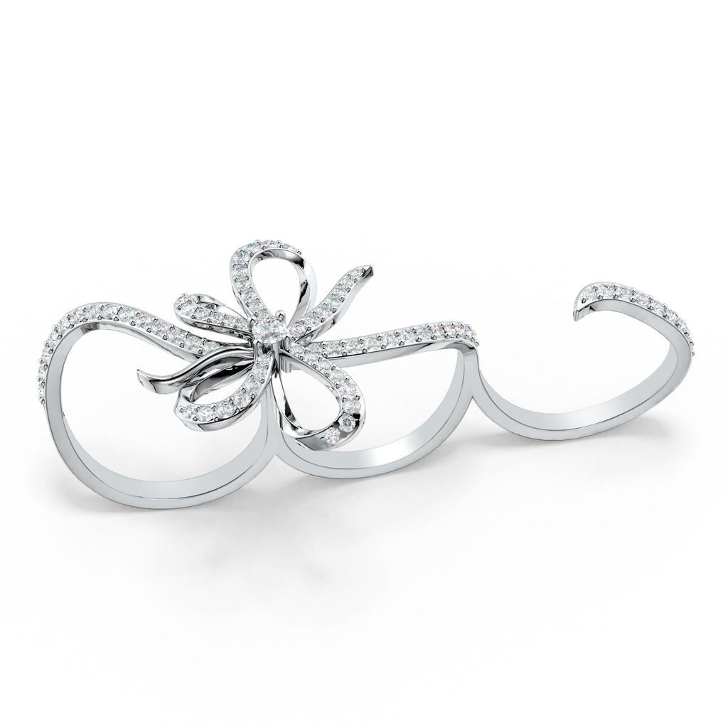 Задорное и игривое кольцо-заявление на три пальца из стерлингового серебра 925 пробы с дизайном ленты, украшенное муассанитом цвета D