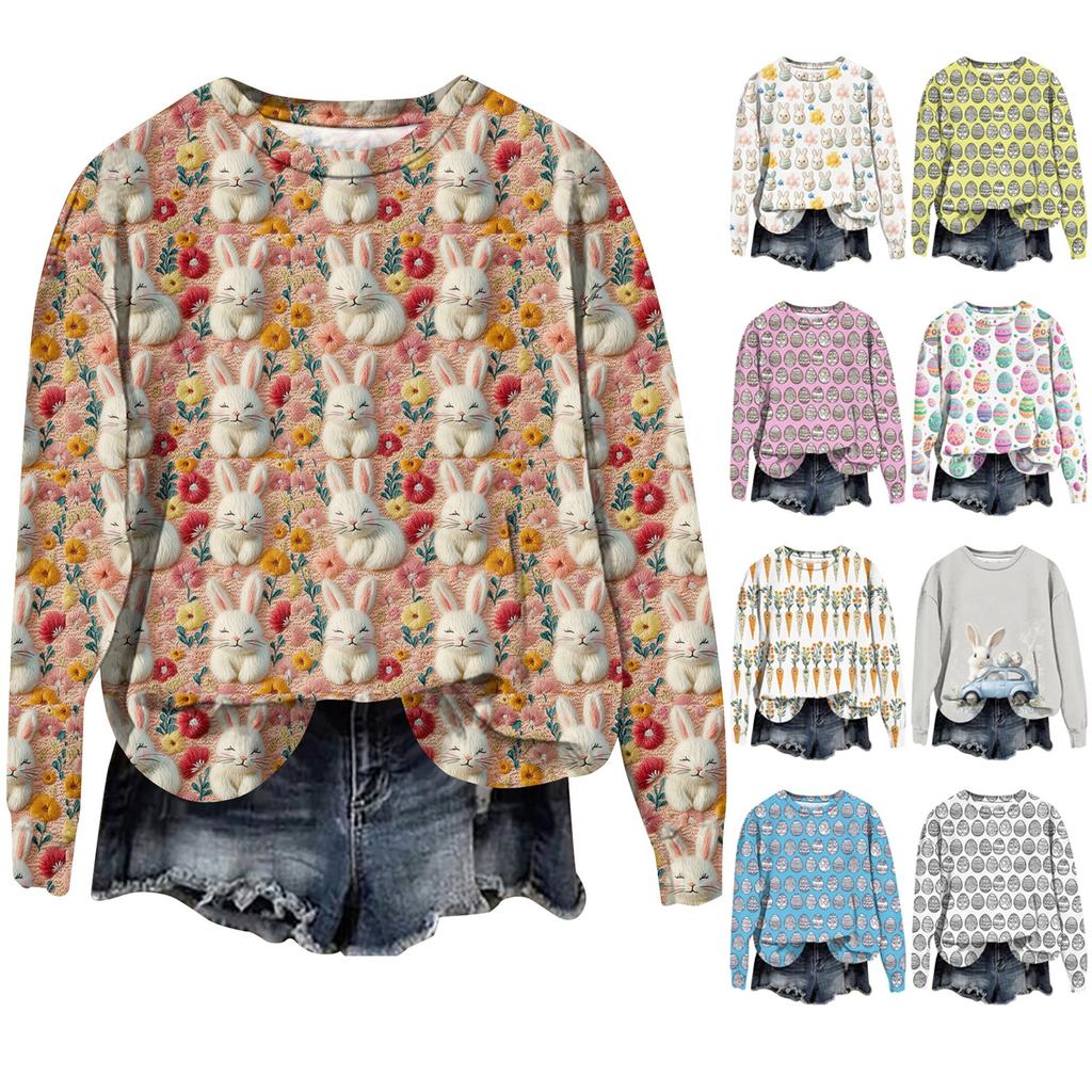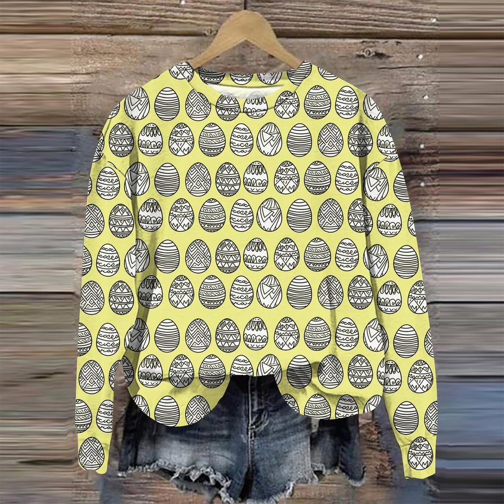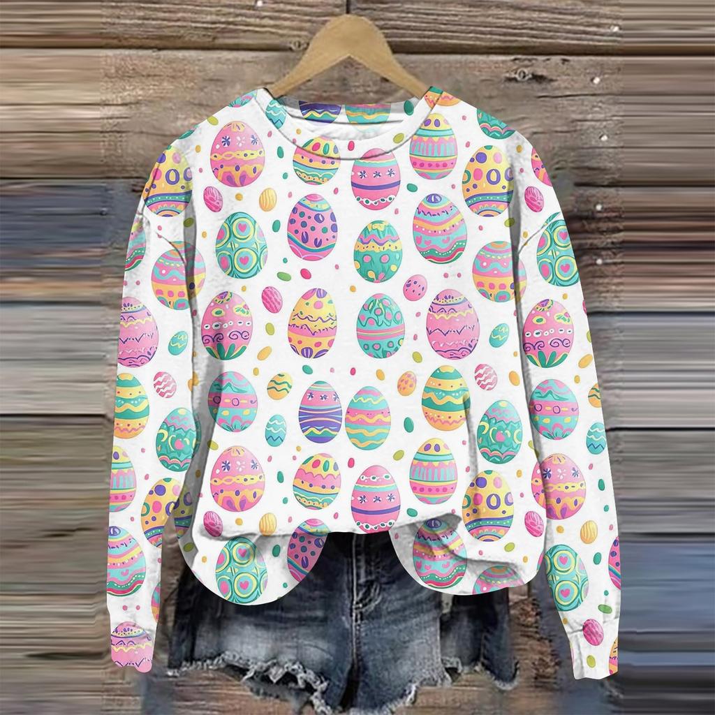 Женская мода Пасха Печатный Длинный рукав Свободный круглый вырез Толстовка Топ Осень