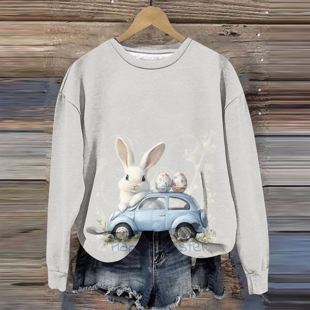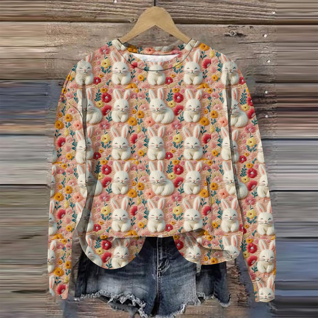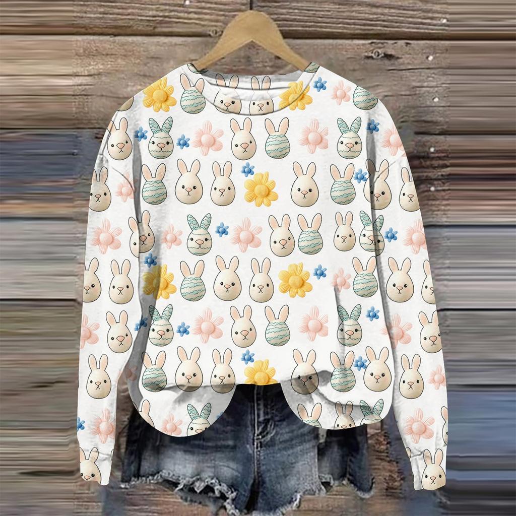 Женская мода Пасха Печатный Длинный рукав Свободный круглый вырез Толстовка Топ Осень