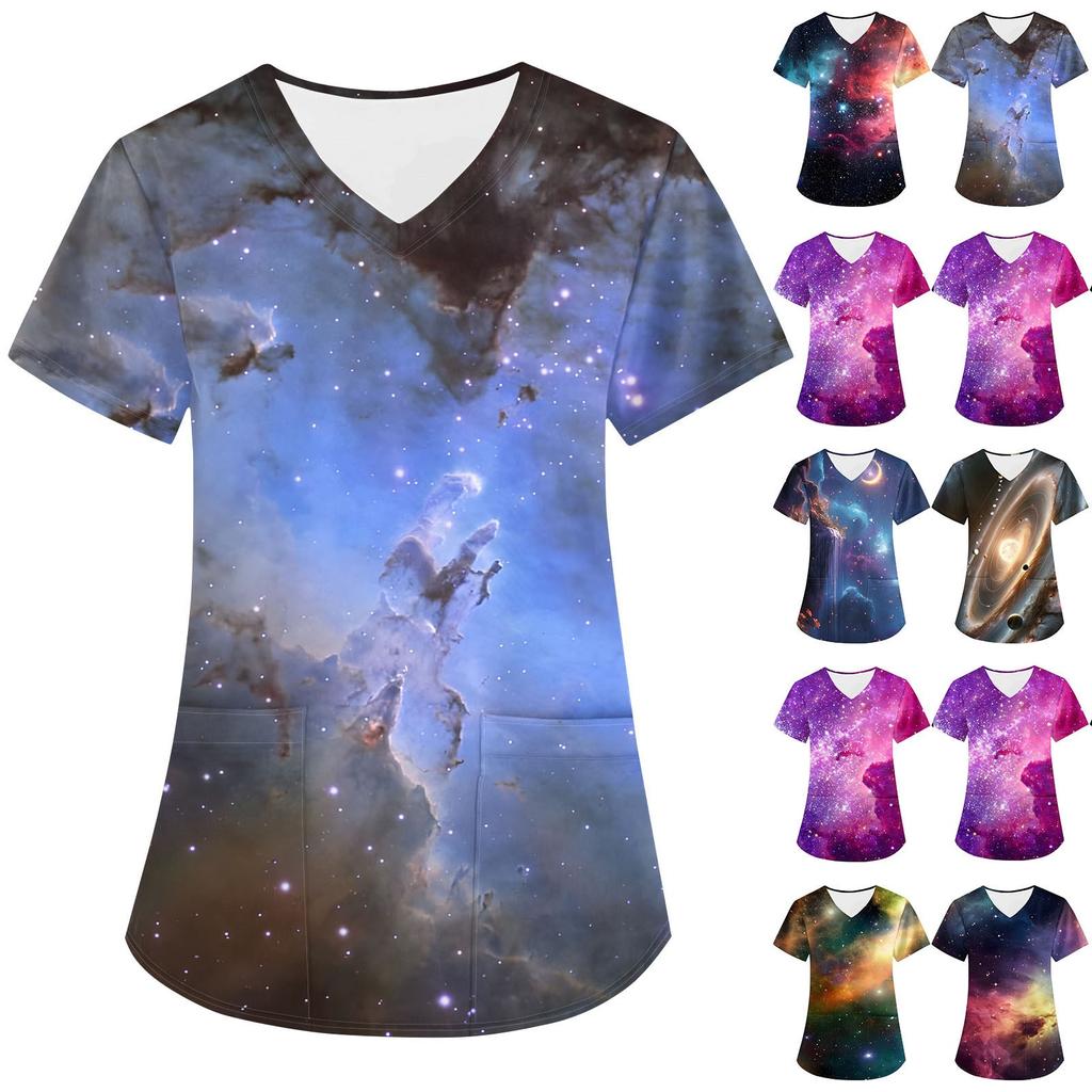 Женская модная астральная принтованная футболка с коротким рукавом и V-образным вырезом с маленьким карманом — купить товар онлайн с бесплатной доставкой до всему миру!