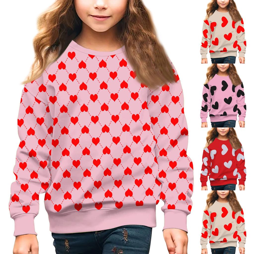 Девочки Круглый вырез Пуловеры для детей День святого Валентина Печатные топы