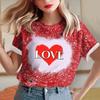 Женская свободная футболка с круглым вырезом и принтом ко Дню святого Валентина с короткими рукавами