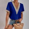 Женская мода, повседневный кружевной свободный топ с короткими рукавами и v-образным вырезом — купить товар онлайн с бесплатной доставкой до всему миру!