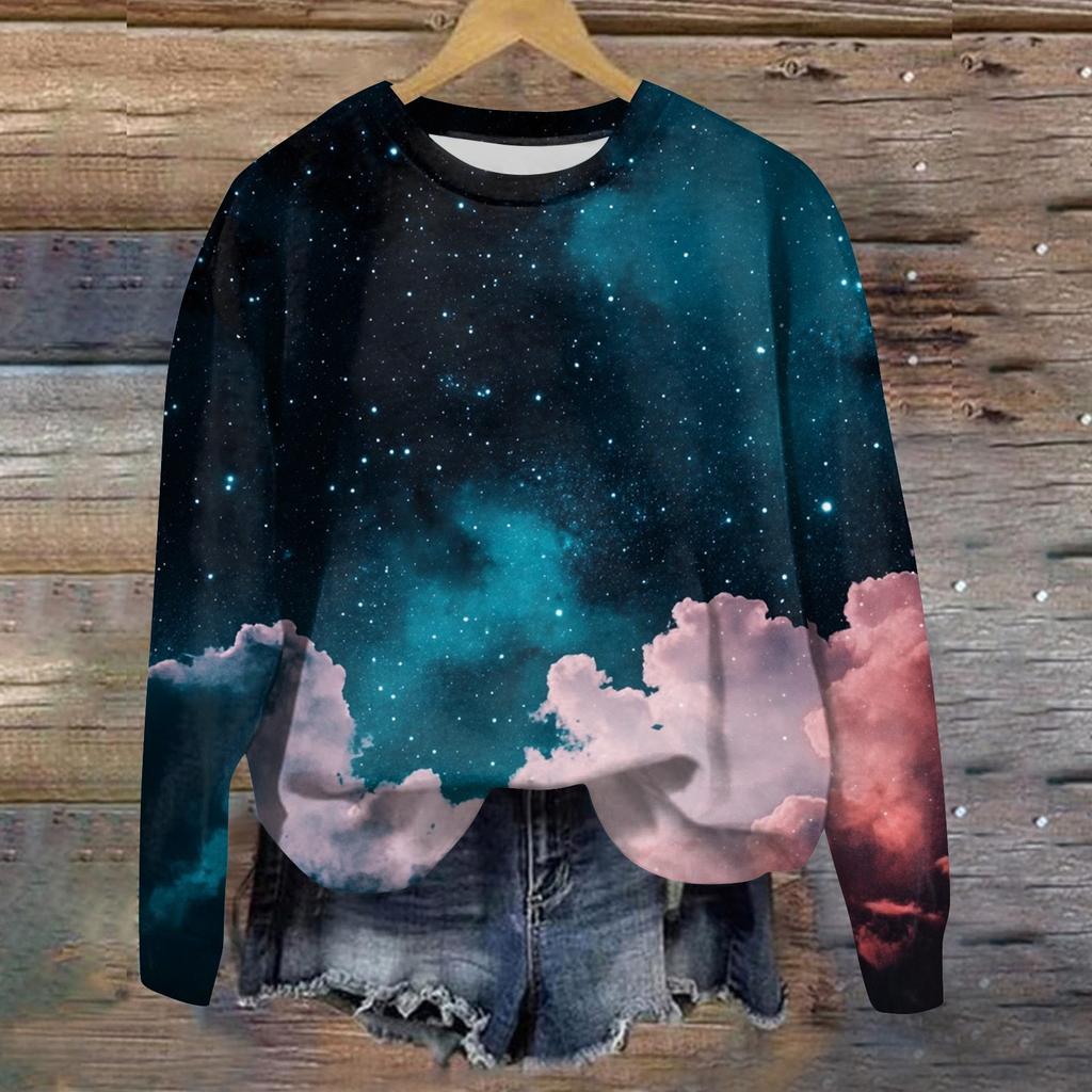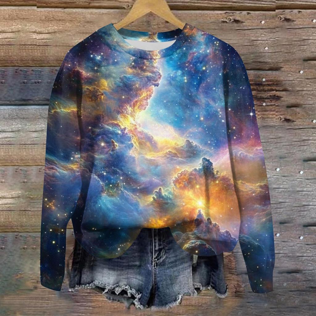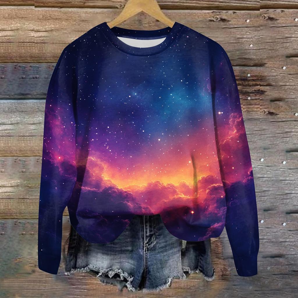 Женская свободная повседневная толстовка с круглым вырезом и длинными рукавами, модный топ с длинными рукавами