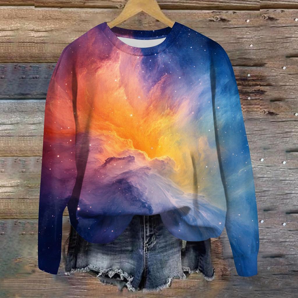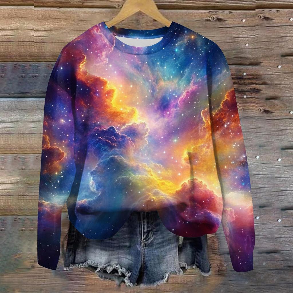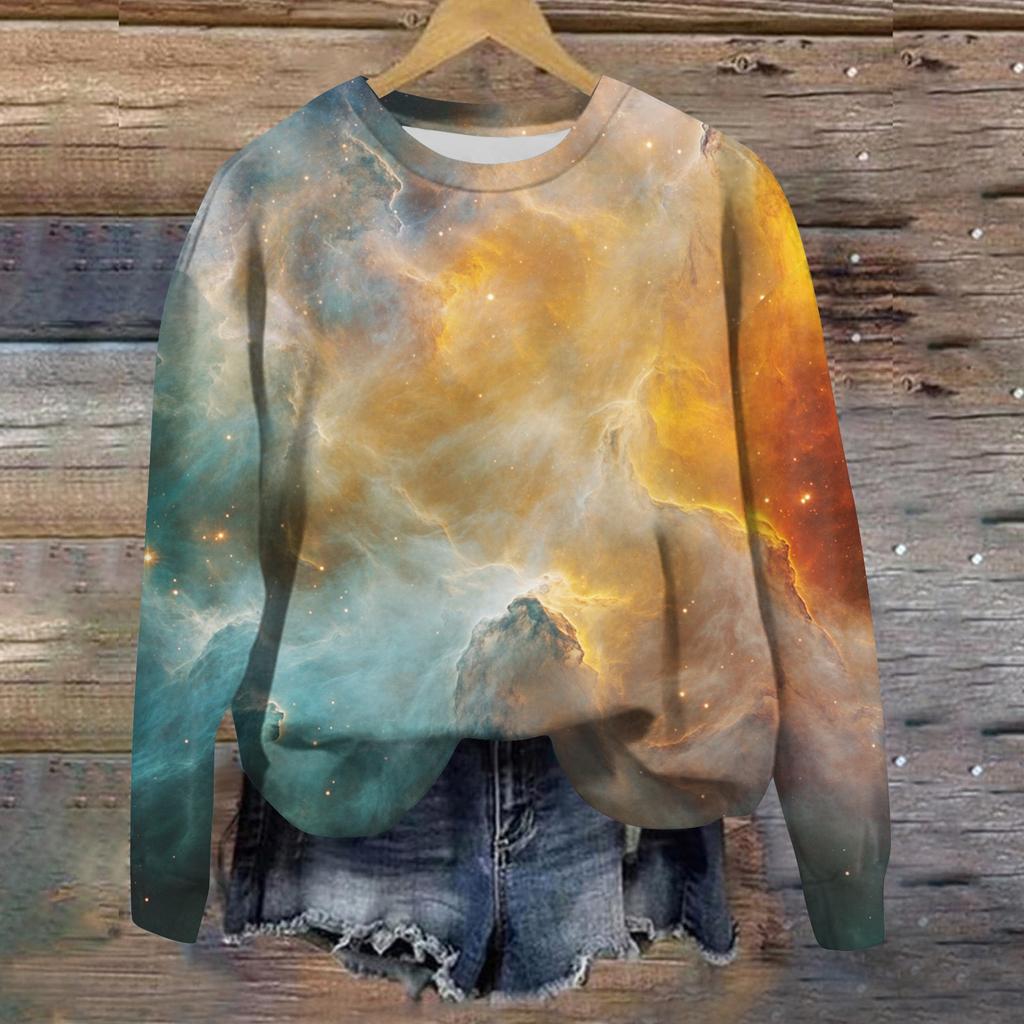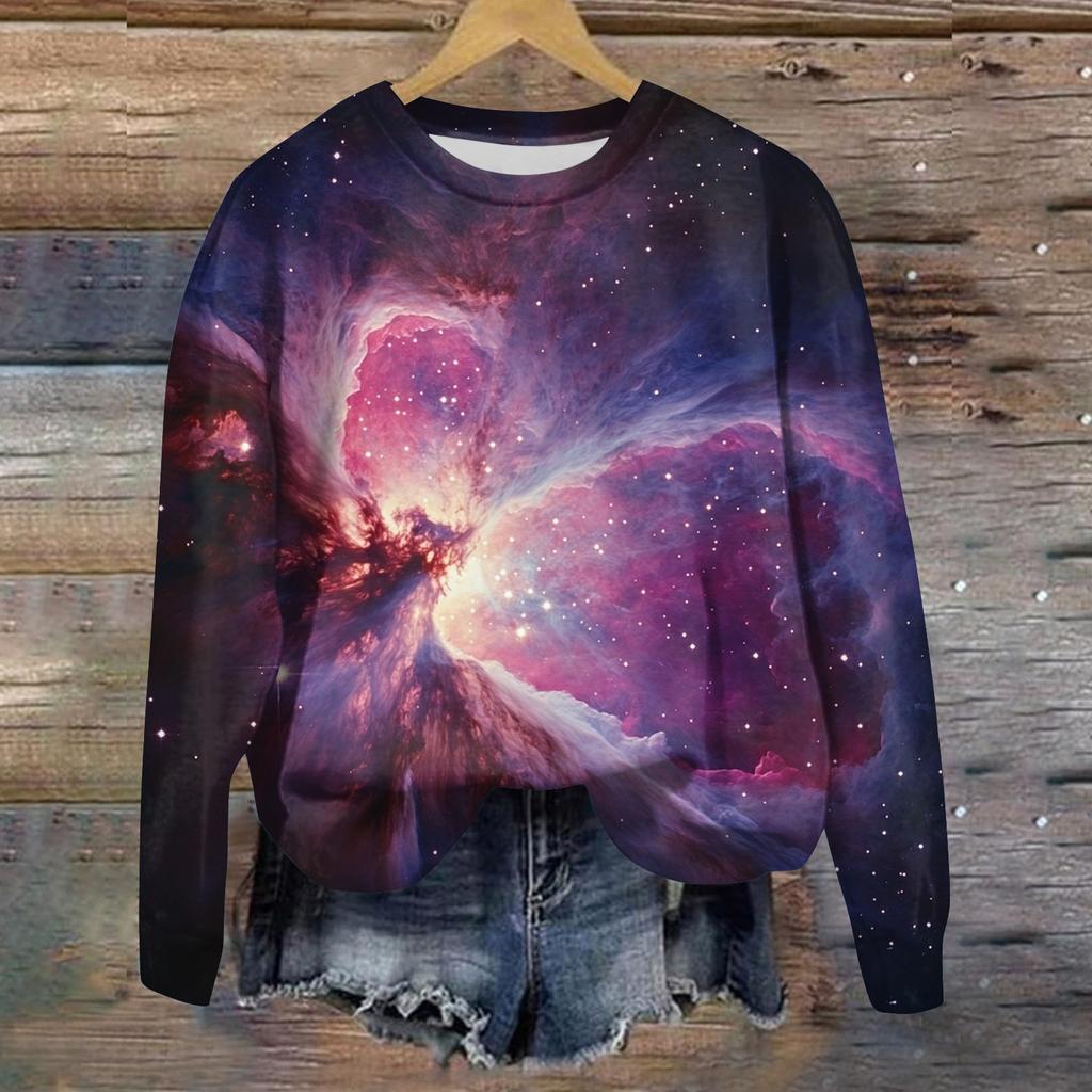 Женская свободная повседневная толстовка с круглым вырезом и длинными рукавами, модный топ с длинными рукавами