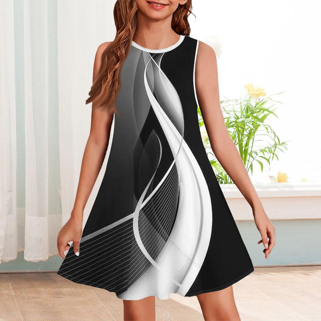 Летнее платье для девочек без рукавов с принтом в цвете, повседневное платье
