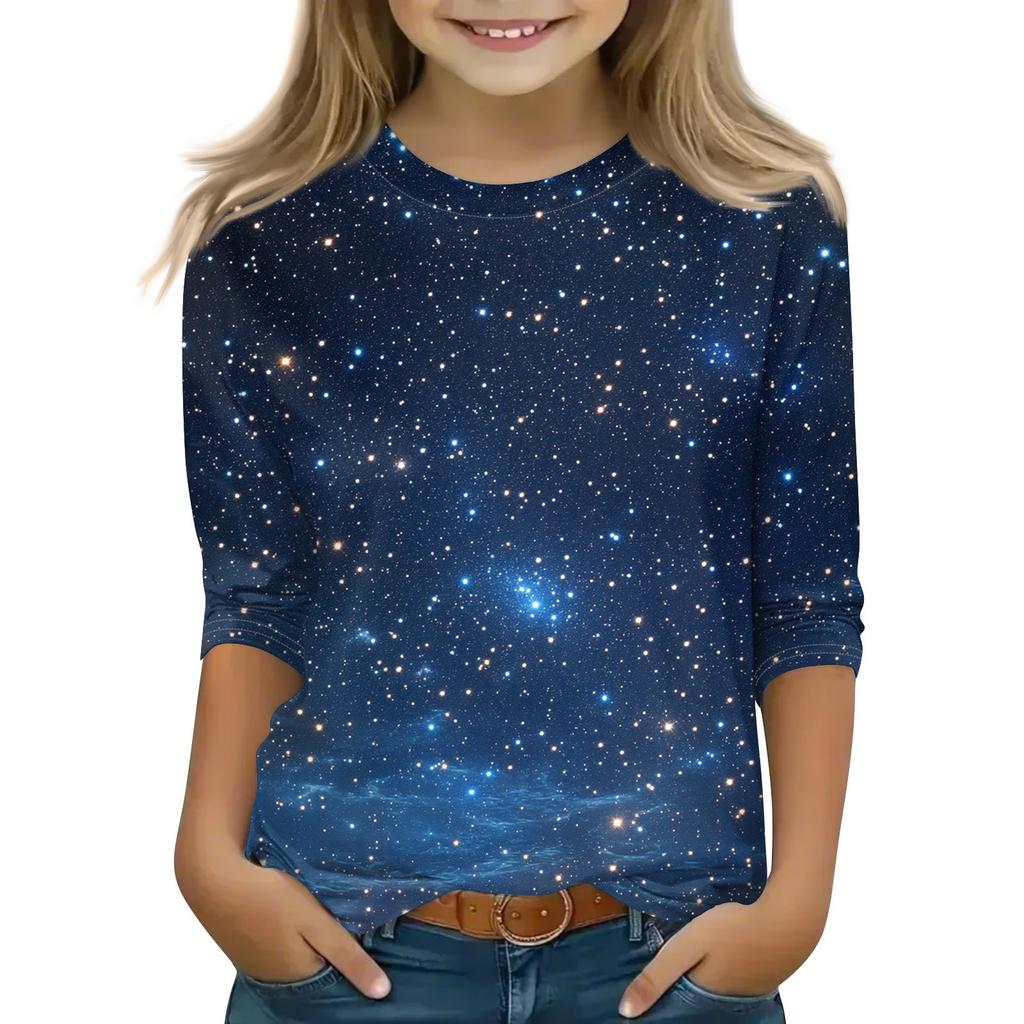 Топы с принтом для девочек 5-16 лет с круглым вырезом и рукавами 3/4 Футболки Модные топы Наряды Футболки