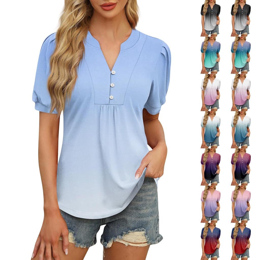 Женские топы, рубашки с коротким рукавом, повседневные летние топы с V-образным вырезом, плиссированные футболки на пуговицах, свободные туники, блузки — купить товар онлайн с бесплатной доставкой до всему миру!